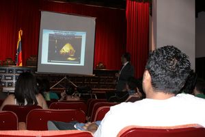 El primer encuentro entre el médico y los uesebistas fue durante una conferencia en la que expuso el avance del proyecto e invitó a los presentes a trabajar en el mismo por medio de tesis de grado o colaboraciones. La charla se realizó en el Paraninfo de la Casa Rectoral de la USB como parte de las actividades de la cátedra Introducción a la Bioingeniería, dictada por la profesora Erika Severeyn, de la sección Biofísica y Bioingeniería del Departamento de Tecnología de Procesos Biológicos y Bioquímicos de la USB.